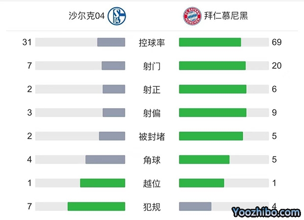 全场比赛结束,沙尔克0-2拜仁慕尼黑。