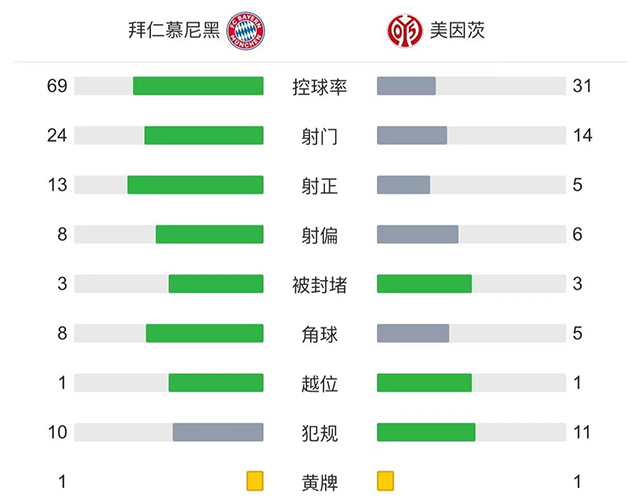 拜仁6-2美因茨 舒波-莫廷连续5场破门马内一射两传