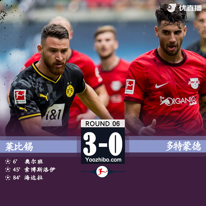 JRS直播网讯:北京时间9月10日,德甲第6轮比赛,RB莱比锡主场对阵多特蒙德,这是前多特主帅罗泽执教莱比锡的首秀。上半场,刚开场奥尔班就在角球机会中头球破门,随后主场做战的莱比锡多次制造进攻机会,维尔纳也是因为越位错失一次单刀,索博斯洛伊世界波;下半场,双方都没有太多好机会,直到最后时刻海达拉破门,最终莱比锡3-0多特。