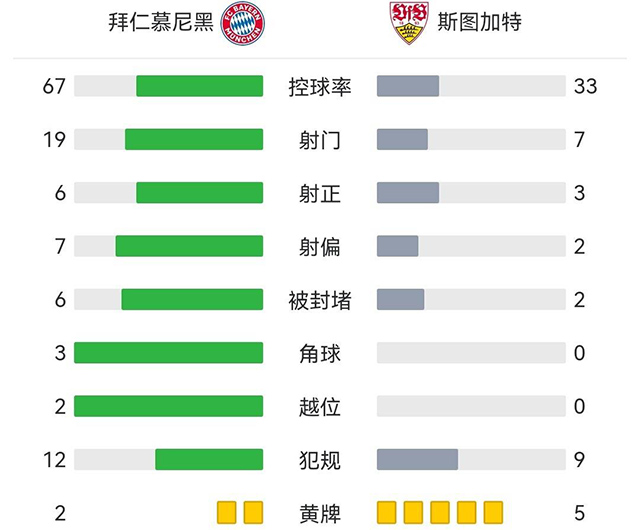 全场比赛结束,拜仁2-2战平斯图加特,遭遇三连平。