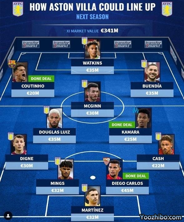 JRS直播网05月28日讯 近日,维拉在转会市场十分活跃,在2周内连续官宣3笔强援。对此,《转会市场》预测了他们下赛季的首发阵容。