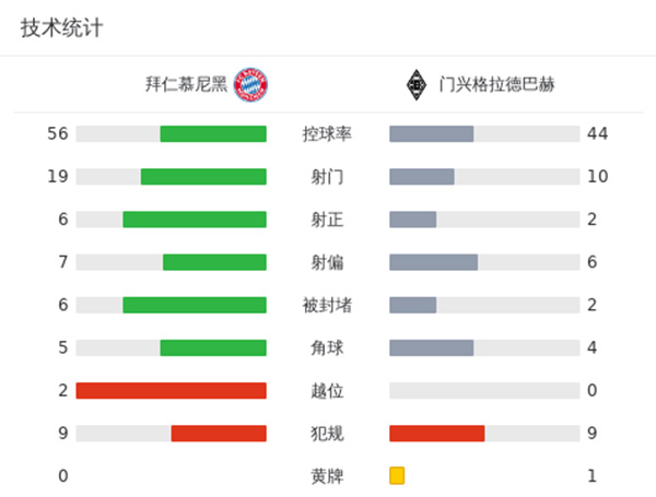 最终拜仁3-1赛季双杀门兴距榜首2分。