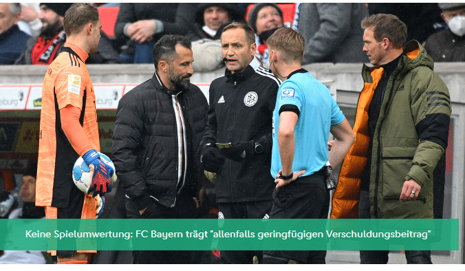 德国足协体育法庭认为,拜仁不应对此事负责,这主要是裁判的失误。
