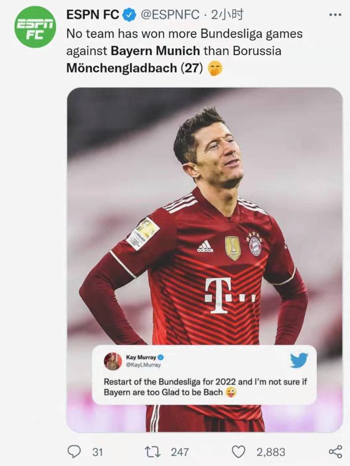拜仁克星!门兴联赛27次击败拜仁,所有球队最多