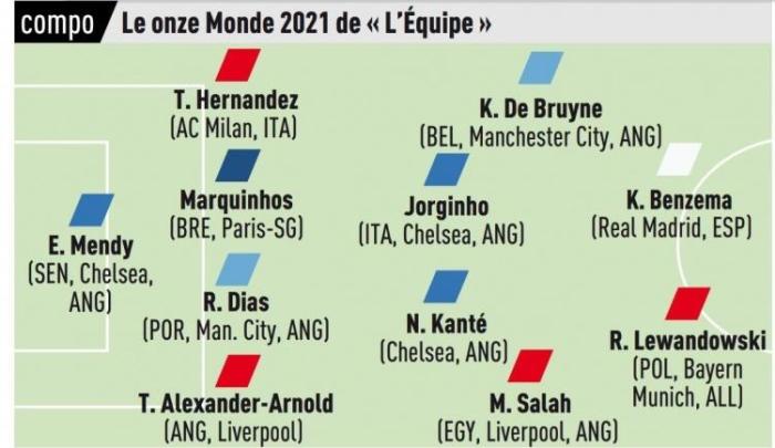 JRS直播网01月05日讯 ,《队报》评选了2021年最佳阵容,其中本泽马、莱万搭档双前锋,梅西、C罗无缘入选。