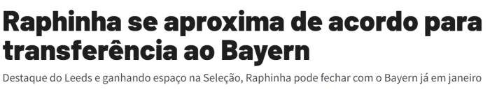 JRS直播网12月25日讯 据阿根廷媒体TNT报道,拜仁接近签下利兹联边锋拉菲尼亚,转会费约为5000万欧元。
