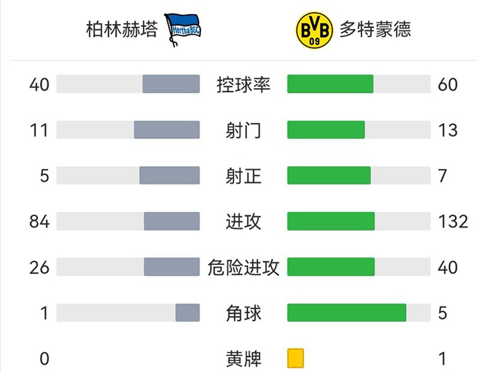 柏林赫塔3-2多特蒙德 布兰特蒂格斯建功里希特双响