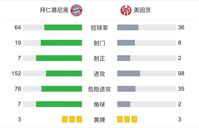 第88分钟,哈克拼抢犯规吃到黄牌。全场比赛结束,拜仁慕尼黑2-1美因茨。