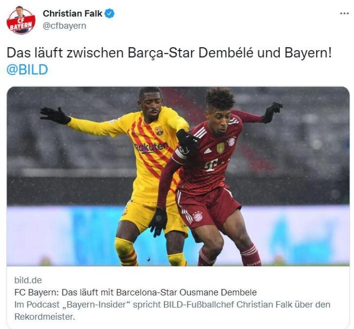 《图片报》还表示,其实早在多特签下登贝莱前,拜仁就对登贝莱产生了兴趣。