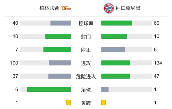 全场比赛结束,拜仁慕尼黑客场5-2战胜柏林联合。