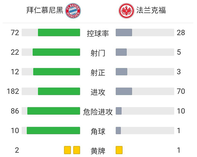 拜仁1-2法兰克福 格雷茨卡破门科斯蒂奇传射