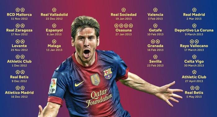 梅西在联赛当中连续21场进球,在这21场比赛当中,梅西状态火热打入了33粒进球,场均超过1.57粒进球。这是一个相当恐怖的数据,如果不是在2013年梅西意外遭遇伤病的话,那么这个记录恐怕还会变得更长。 在球迷们的印象当中,12年的梅西是他绝对意义上的巅峰。但其实有所出入,13年的梅西其实在进球效率上更为恐怖,但奈何遭遇了伤病的侵袭。如果在13年梅西保持健康的话,那么他的进球数字恐怕要比12年更为恐怖,这个连续21场进球就是梅西状态最好的证明。