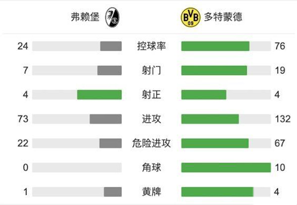 最终全场比赛结束,弗赖堡主场2-1击败多特蒙德。