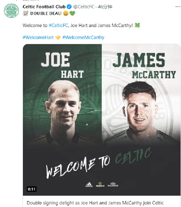 今年夏天,热刺清洗了不少球员,比如拉梅拉、托比等人都离队了,而现在轮到乔哈特了。近日,苏超凯尔特人官网宣布球队签下了乔哈特和麦卡锡。其中,麦卡锡是自由转会加盟的。而乔哈特花费了球队120万欧元。哈特是穆里尼奥时期引进的球员,而球队的新帅努诺并不看好哈特,最终他离队了。就是不知道34岁的哈特,在苏超有什么表现呢?