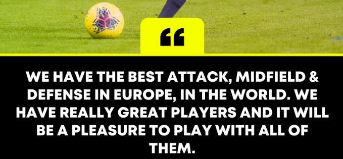科芒说:“我们有全欧洲,不,全世界最好的进攻线、中场和后防线,我们有一些真的非常棒的球员,能和他们一起踢球是我的荣幸。”
