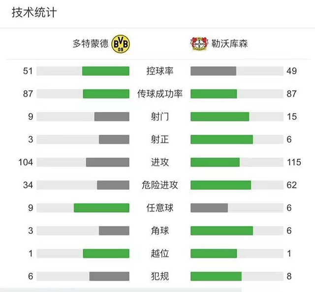 最终全场比赛结束,多特蒙德3-1战胜勒沃库森。