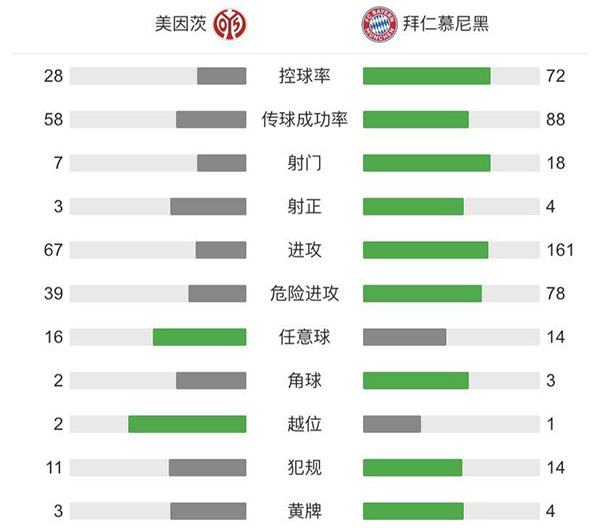 拜仁慕尼黑1-2美因茨 伯卡特闪击莱万补时破门