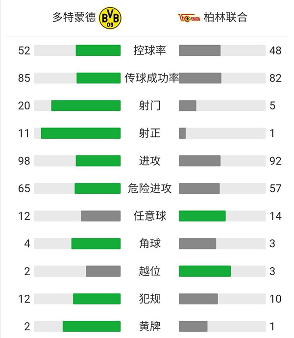 JRS直播网讯:北京时间4月22日02:30,德甲第30轮继续进行,多特蒙德坐镇主场迎战柏林联合。上半场,因瓦尔特森开场12秒远射击中横梁,随后罗伊斯造点,哈兰德操刀被扑,罗伊斯跟进补射得手。下半场,克鲁泽任意球攻门击中立柱,布兰特助攻格雷罗锁定胜局。最终,多特主场2-0击败柏林联合。