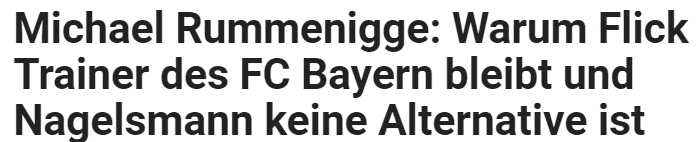 “弗里克在拜仁很开心,他和拜仁的合同到2023年。卡尔-海因茨希望自己在年底离开的时候,身后留下的是一支好的球队,为此,他需要一个顶级教练。”