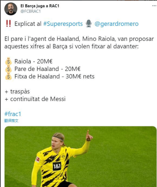 三、巴萨需要支付给哈兰德的父亲2000万欧元的签字费;