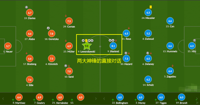 哈兰德和莱万是本场比赛的绝对焦点,前者梅开二度后受伤下场,遗憾未能帮助球队挺到最后一刻;后者虽然整体状态不在最佳,但最后那脚远射依然彰显了足坛第一人的实力。正如哈兰德接受采访时说的那样:“只要我想用进球追赶莱万,他就会来一个帽子戏法”,现在的足坛还是波兰人的。