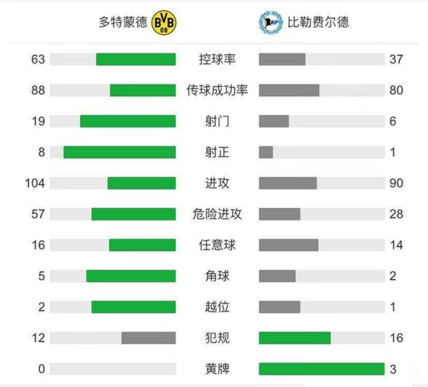 查看:多特蒙德vs比勒菲尔德 全场录像技术统计: