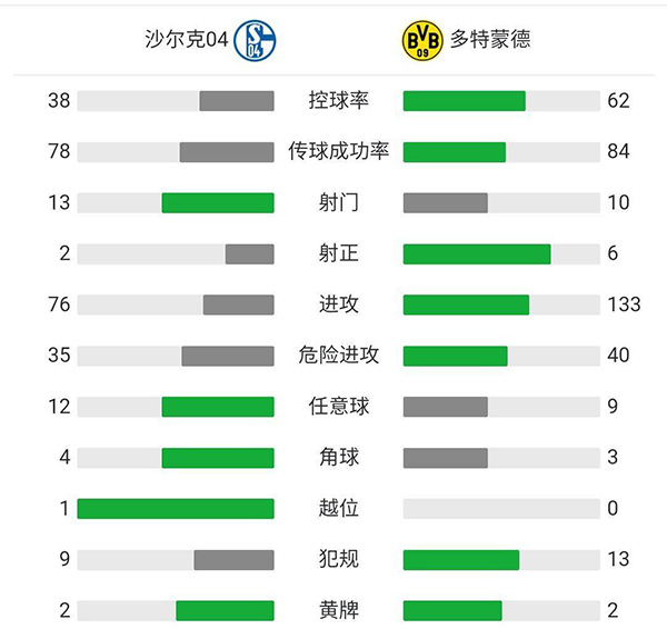 查看:沙尔克vs多特蒙德 全场录像技术统计: