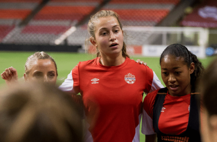 这位悍将是出生在2001年,虽然年龄小,但是惠特玛早在4年前的时候就已经代表加拿大国家队比赛了,在加拿大她也是名声在外,为加拿大国家队她打了32场比赛,取得了13粒的进球,表现十分的出色。同样她还有另外一个身份,她是拜仁球星阿方索-戴维斯的女朋友。