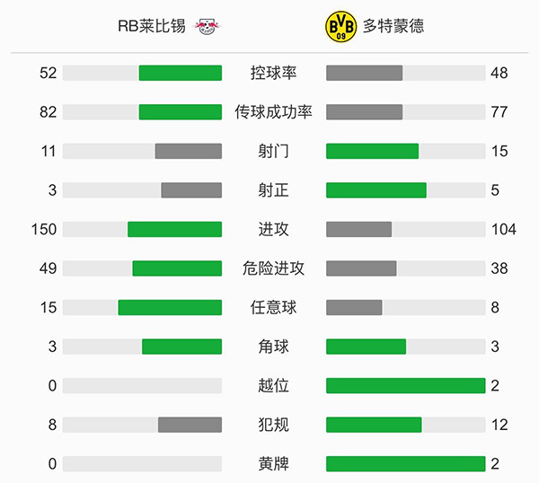 查看:莱比锡vs多特蒙德 全场录像技术统计: