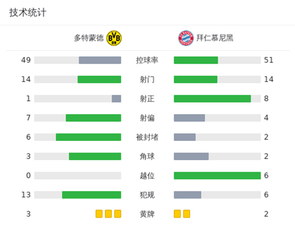 全场比赛结束,最终拜仁4-0多特蒙德。