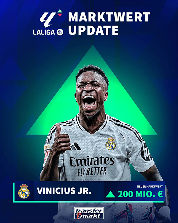 JRS直播网讯在一个月前,舆论还一致看好维尼修斯赢得金球奖。德转在10月11日宣布,将维尼修斯的身价由1.8亿欧上调至2亿欧,与哈兰德并列世界第一。