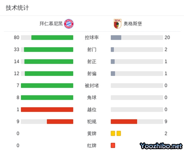 最终拜仁3-0奥格斯堡,各项赛事六连胜,且连续六场比赛完成零封。