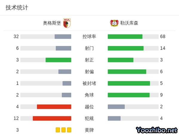 第40分钟,泰拉转身横敲,维尔茨假动作晃开防守球员后一脚低射破门,奥格斯堡0-2勒沃库森!