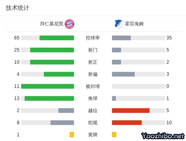 最终拜仁主场5-0大胜霍芬海姆,拜仁取得联赛3连胜。