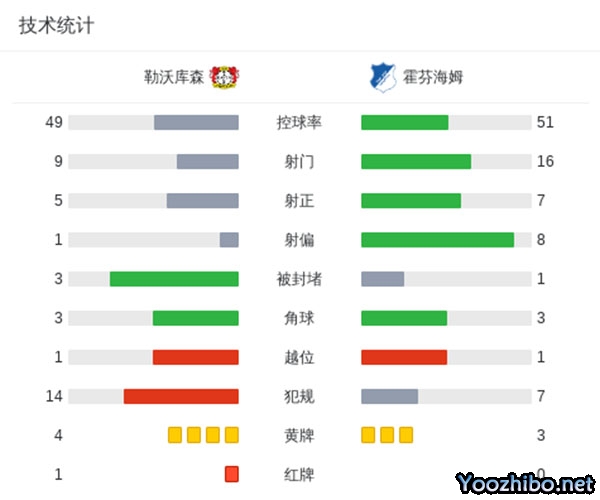 全场结束,勒沃库森3-1霍芬海姆。