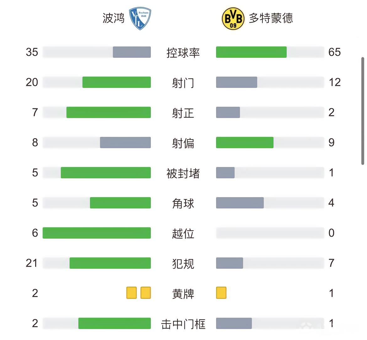 关键事件: 第14分钟,波鸿左路进攻传到禁区肋部,斯托格跟上小角度爆射破门!波鸿1-0多特蒙德。