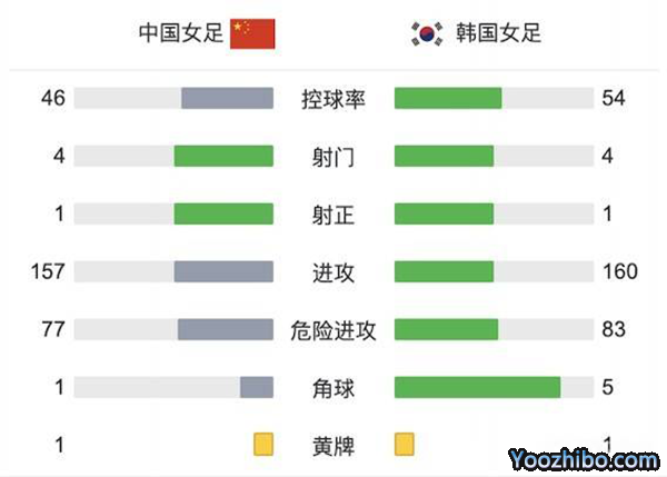 全场比赛结束,中国女足1-1战平韩国女足。