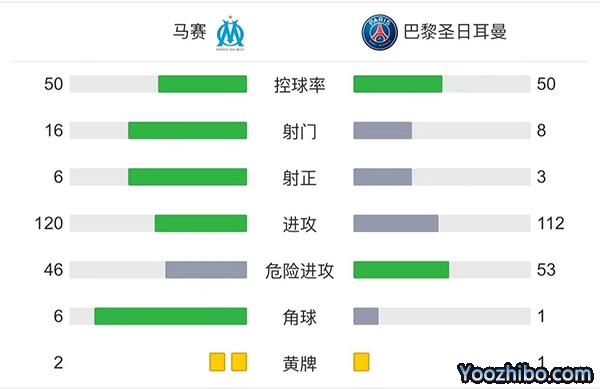 全场比赛结束,最终巴黎1-2不敌马赛。