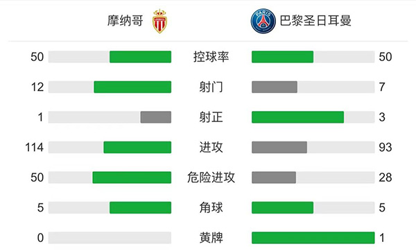 第19分钟,摩纳哥后卫迪萨西控球失误,姆巴佩抢断得手,横传门前,伊卡尔迪包抄打空门得手,巴黎圣日耳曼1-0摩纳哥!