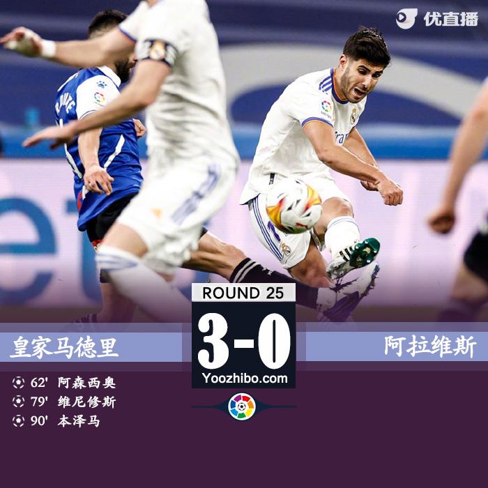 JRS直播网2月20日讯 北京时间2月20日凌晨4点整,2021-22赛季西甲第25轮在伯纳乌球场展开角逐,皇家马德里坐镇主场迎战阿拉维斯。上半场双方均无建树,下半场阿森西奥世界波打破僵局,维尼修斯扩大比分,本泽马两传一射。最终皇家马德里主场3-0完胜阿拉维斯,皇马终结各项赛事两场不胜。积分榜方面,皇马积57分继续领跑,阿拉维斯积20分位居倒数第二。