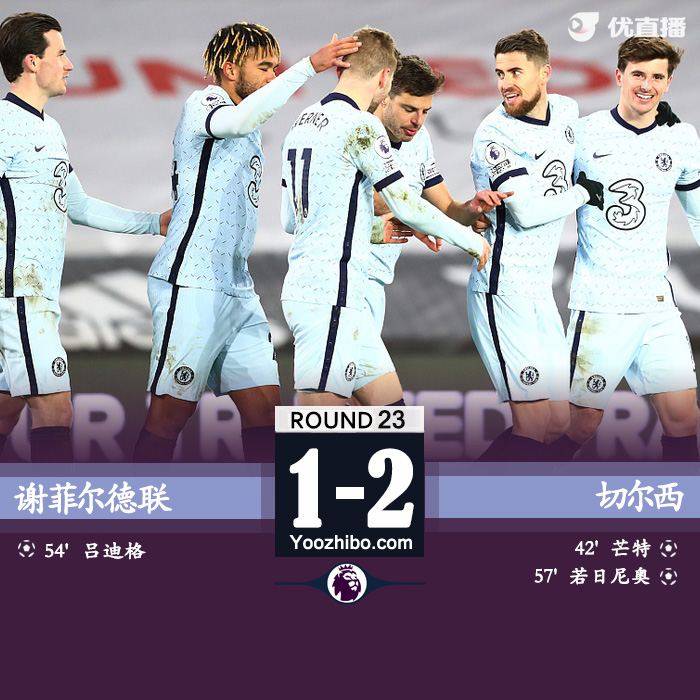 JRS直播网2月8日讯 北京时间2月8日03:15,2020-21赛季英超联赛第23轮,切尔西客场挑战谢菲尔德联。上半时刚开场伯克险些破门,维尔纳助攻芒特先拔头筹;下半时吕迪格乌龙送礼,维尔纳造点,若日尼奥点射再度领先。最终,切尔西客场2-1战胜谢菲尔德联,取得联赛三连胜。积分榜上,蓝军积39分升至第五位,谢菲尔德联仍位居垫底。
