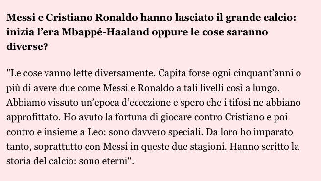 姆巴佩还非常谦虚表示,自己和哈兰德不太可能取代梅罗成为新的双骄:“也许需要50年甚至更长时间,我们才会有两个像梅西和C罗这样的球员,长期处于这样的顶级水平。我们经历了一个特殊的时代,我希望球迷们能享受这个时代。”
