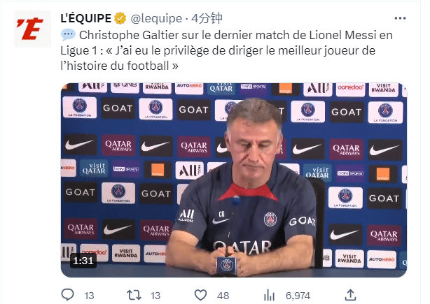 JRS直播网06月02日,巴黎圣日耳曼俱乐部主帅加尔蒂,在出席法甲末轮的赛前发布会上亲口确认,末轮与克莱蒙的比赛,将会是梅西在大巴黎的最后1场比赛,梅西将会在赛季结束后离队,自己非常有幸执教过梅西。