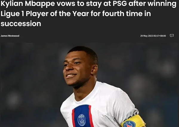 姆巴佩在法国顶级联赛中打进28球,帮助俱乐部再次获得联赛冠军。他在巴黎圣日耳曼的合同还剩一年,姆巴佩的言论可能是在暗示他计划在2023-24赛季后自由转会离开该俱乐部。