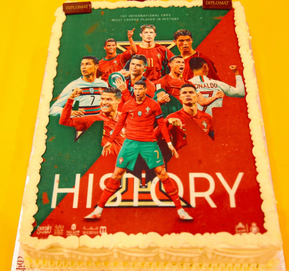 虽然都是顶级的巨星,但是C罗和梅西目前在俱乐部的待遇是不同的,C罗所在的沙特联赛虽然水平相对比较低,但C罗在那里是众星捧月的地位。这次从国家队回到俱乐部,利雅得胜利给C罗准备了庆祝刷新国家队出场纪录的纪念蛋糕,蛋糕的上面是C罗在葡萄牙队的经典时刻,非常好看。
