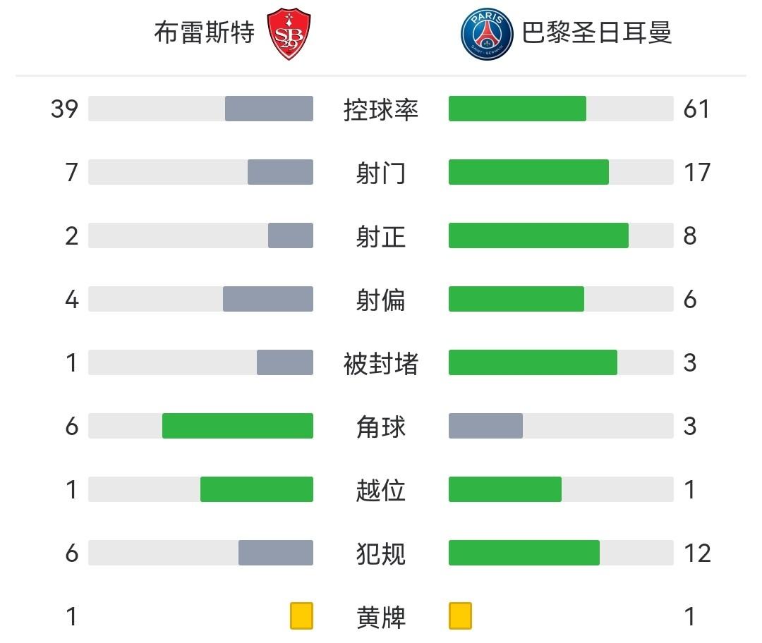 最终巴黎客场2-1战胜布雷斯特,巴黎取得联赛四连胜。