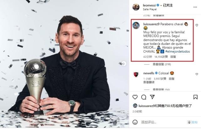 除了阿根廷队友们,梅西三大好友内马尔、小罗和苏亚雷斯,也都发文送上祝贺。苏亚雷斯在梅西的最新获奖动态中。写下长文为梅西回击质疑:为你和你的家人感到高兴!应得的奖项。这继续表明仍然有人对谁是最佳还怀有疑问?给你一个大大的拥抱。
