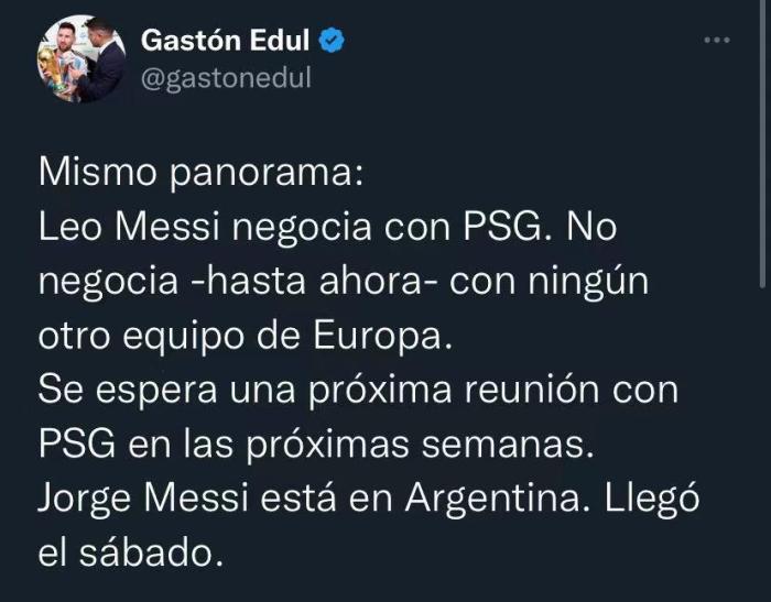梅西和巴黎的谈判预计会在未来几周继续进行,而梅西的父亲豪尔赫-梅西在上周六回到了阿根廷。