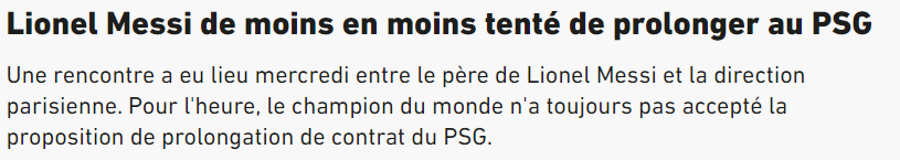 世界杯后,巴黎的成绩有所下滑,梅西对于巴黎更衣室的氛围也不满意。
