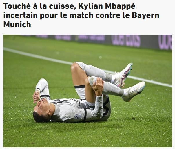 JRS直播网02月03日讯 根据队报消息,姆巴佩做了检查,结果显示大腿肌肉受伤。